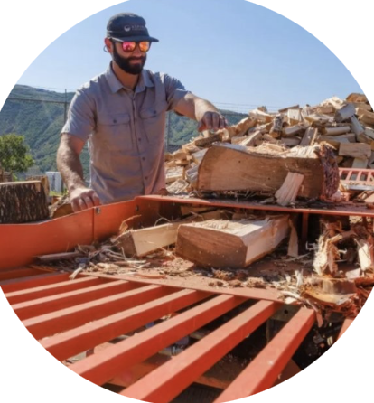 All qualifying wood is loaded and taken to our yard for individual, by hand processing.